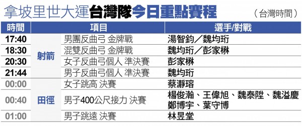 台灣隊歷年在世大運最佳戰績為2009和2015年的1金、2銀。反曲弓男團和混雙都已殺進今天金牌戰;另外,女單彭家楙和男單魏均珩也將從準決賽出發,有望改寫隊史最佳成績。