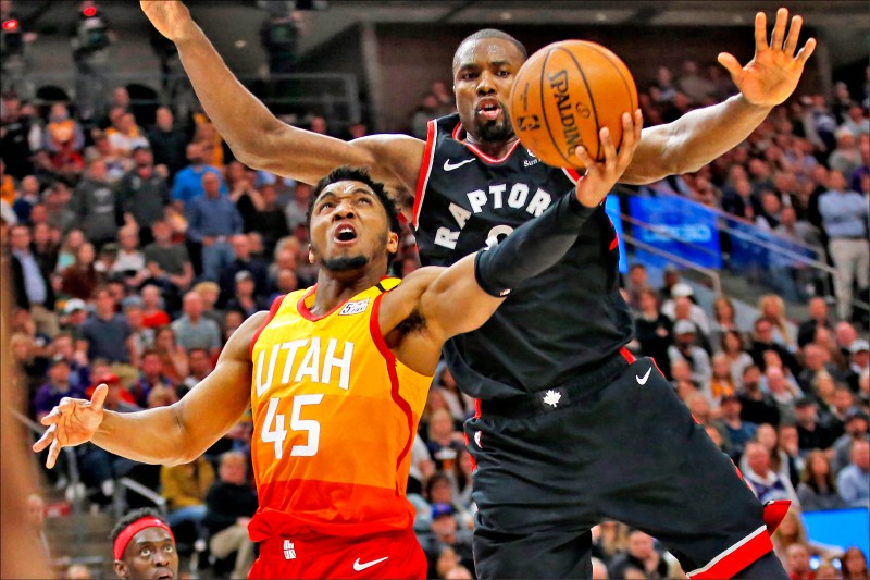 爵士米契爾(左)成為第二位確診武漢肺炎的NBA球員。(資料照)