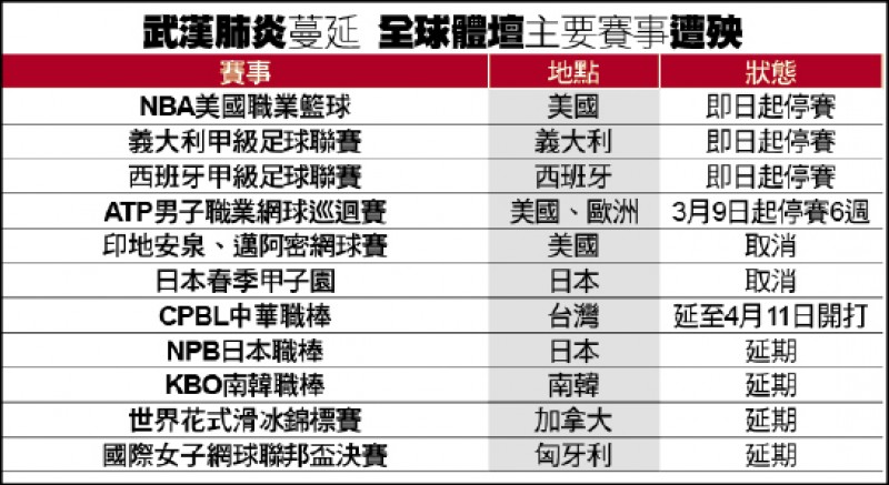 全球體壇「疫」片哀號