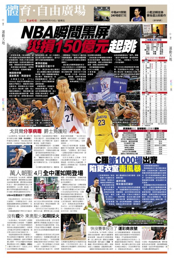 此外,原定昨有6場比賽開打,爵士與雷霆之戰因戈貝爾確診後停戰,國王大戰鵜鶘的戲碼也隨之喊卡,更麻煩的是,何時能復賽還未定,剩下約五分之一的例行賽賽程都連帶受影響。