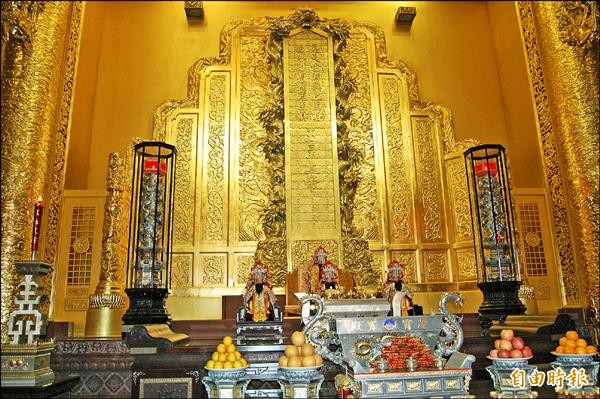 北門南鯤鯓代天府凌霄寶殿用萬兩黃金打造的玉旨牌,是香客必訪景點。(記者楊金城攝)